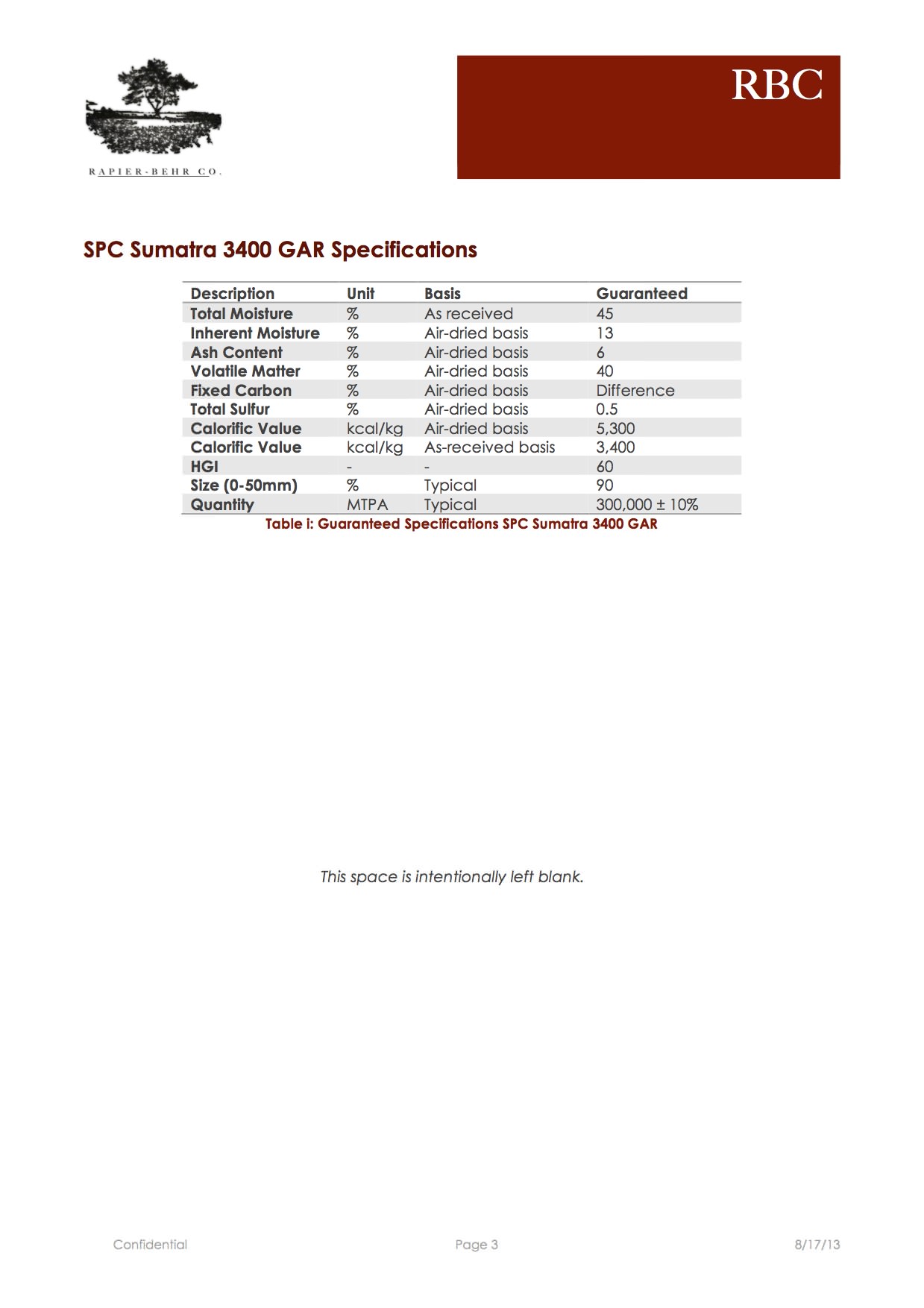 RBC supplies offtake coal primarily from Sumatra. As with any species of natural resources, Indonesian coals are peculiar region-to-region. Sumatra coals albeit higher in natural moisture, are generally low in ash and sulfur, masking an inherently high calorific value.